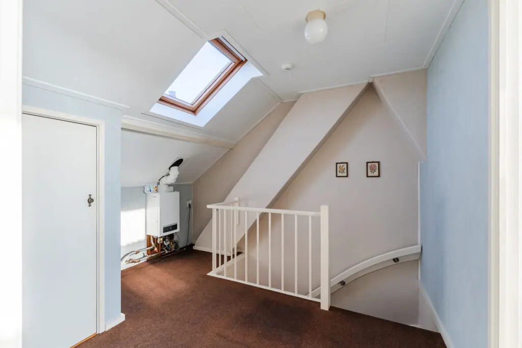 Middels een vaste trap kom je uit op de bovenste verdieping waar zich op de overloop ook de HR ketel (2024) bevind. Verder zijn er nog 2 slaap/werkkamers gecreëerd door middel van het plaatsen van een breed dakkapel aan de achterzijde van de woning.