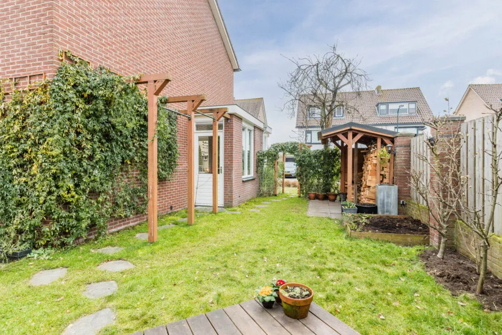 Buitenleven op z’n best. De royale tuin heeft veel privacy en loopt door van achter naar voren, waardoor er in elk seizoen van de zon kan worden genoten. Of je nu wilt tuinieren, ontspannen met een goed boek of lange zomeravonden doorbrengen met vrienden en familie, hier kan het allemaal. Aan de achterzijde van de tuin vind u de stenen garage/berging voor uw auto, fiets en andere spullen of om juist heerlijk te kunnen klussen. Verder kunt u via de poortdeur de openbare weg bereiken en kunt u als het moet 2 auto’s op eigen terrein kwijt.